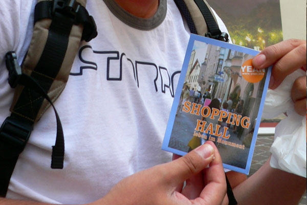 20.06.2005 Hall i.T., Austria | ![]() What is happening to our historical town centres? They are increasingly turning into preserved open air museums or highly exclusive boutique landscapes. YEAN draws a parallel between the historical town of Hall in Tirol and the enclosed and mono-functional space of a shopping mall. The listed buildings are a perfect backdrop for the leisure industry. They provide a lovely space for commercial activities with a typical Tyrolian ambience: Shopping HALL. | |